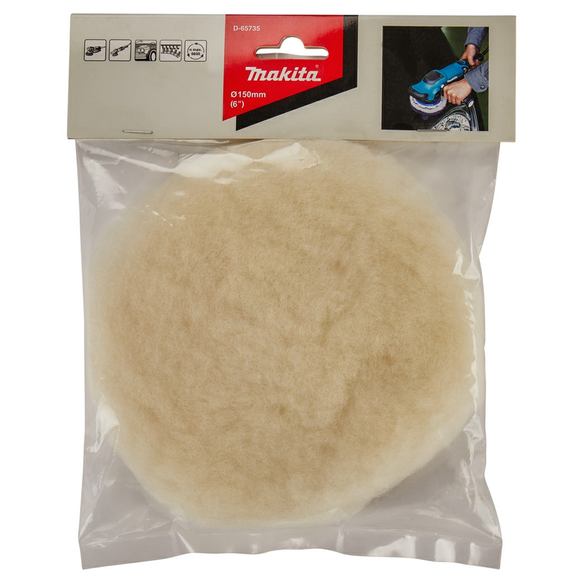 D65735 BONETE DE LANA 150MM (6″) P/ PULIDORA Y LIJADORA EXCENTRICA