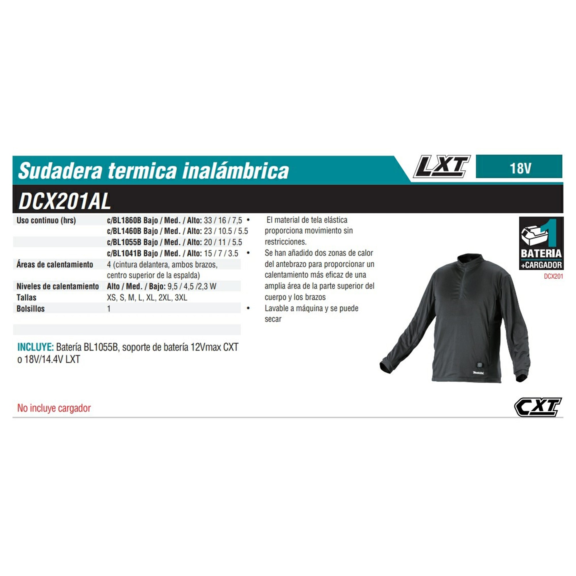 DCX201AXS CHAMARRA AMARILLA ELECTRO-VENTILADA MOTOR BL A BATERIA LI-ION 18V S/BAT Y CARG 18V