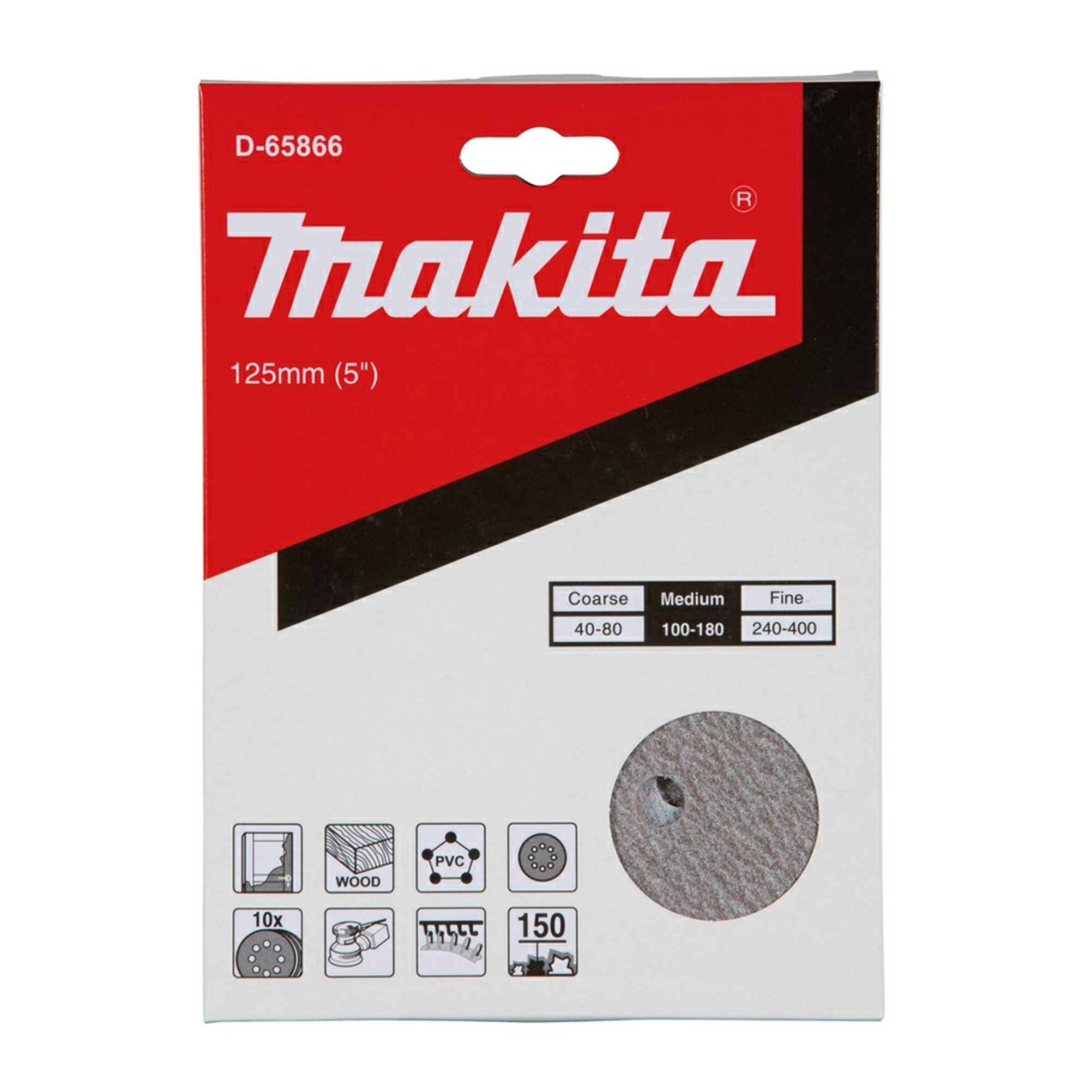 D65866 DISCO DE LIJA CON VELCRO 5″ G 150 CON 8 PERFORCIONES (10PC)