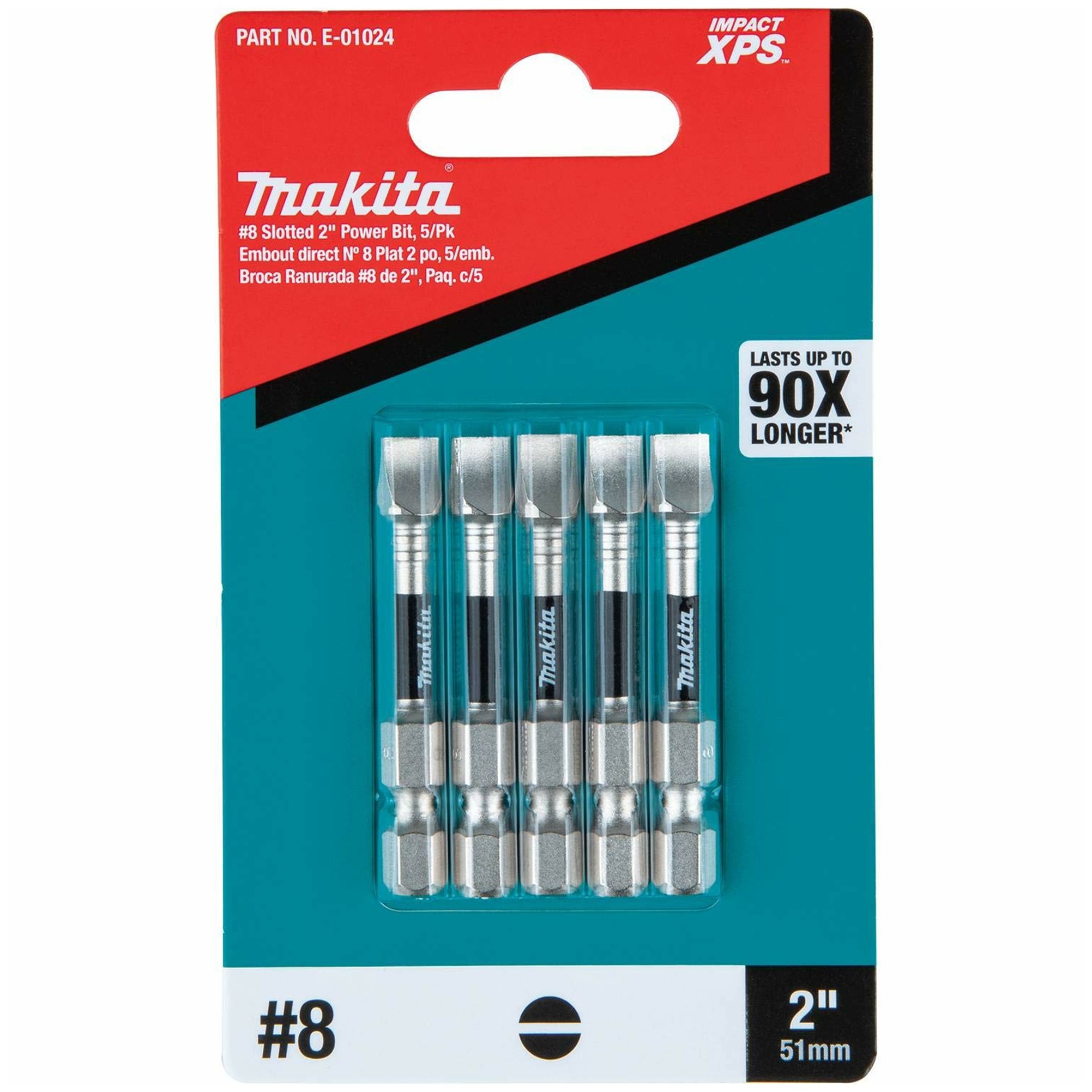 E01024 IMPACT XPS #8 SLOTTED 2″ POWER BIT 5/PK