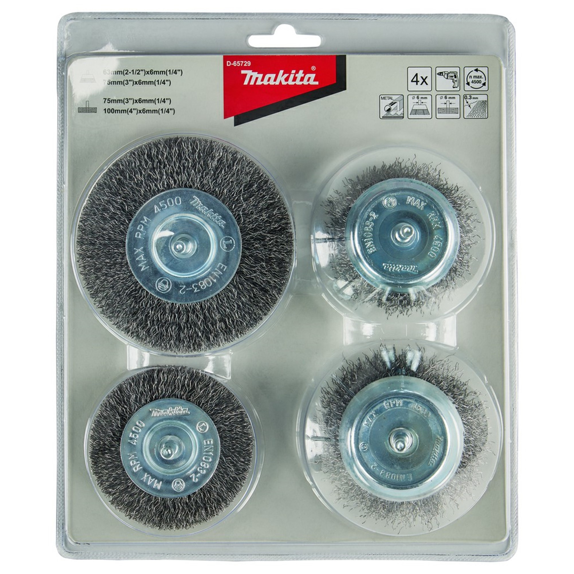 D65729 JGO DE CARDAS PARA TALADRO 4 PCS