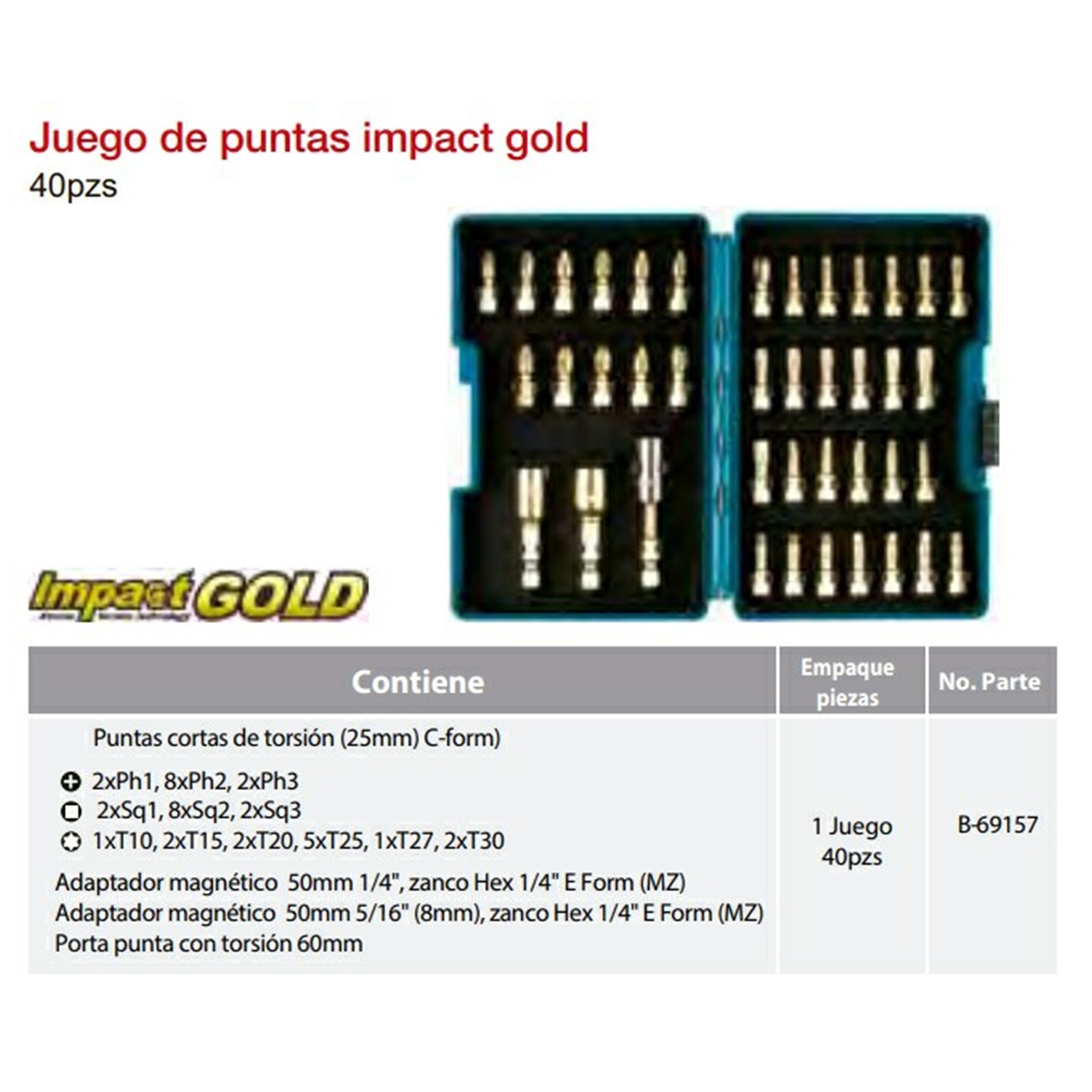 B69157 JGO DE PUNTAS IMPACT GOLD C/40PZAS. (PH,SQ,T)
