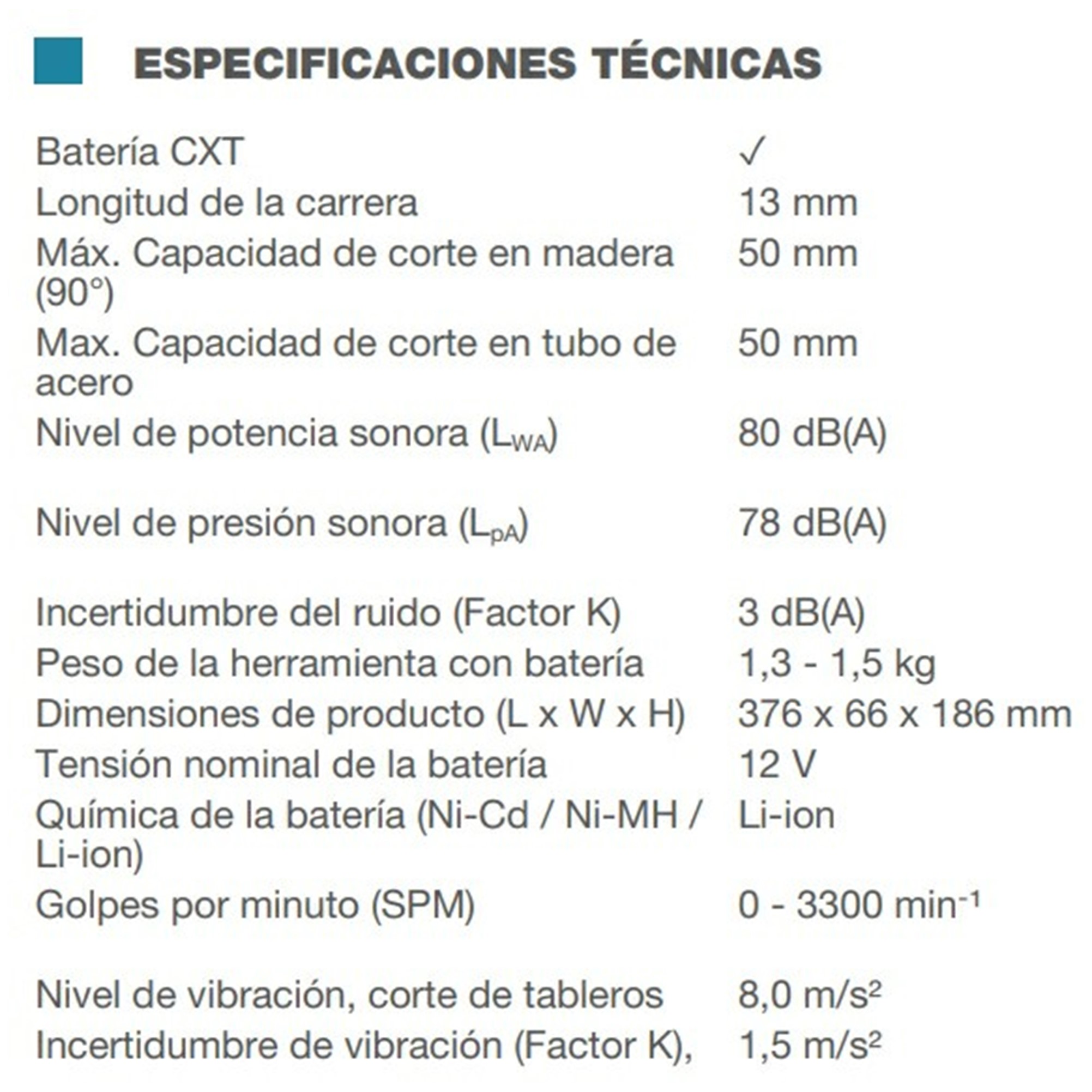 JR103DZ SIERRA RECIPROCA V.V. 0-3,300 CPM, LI-ION S/BAT Y CARG.C/LUZ 12V