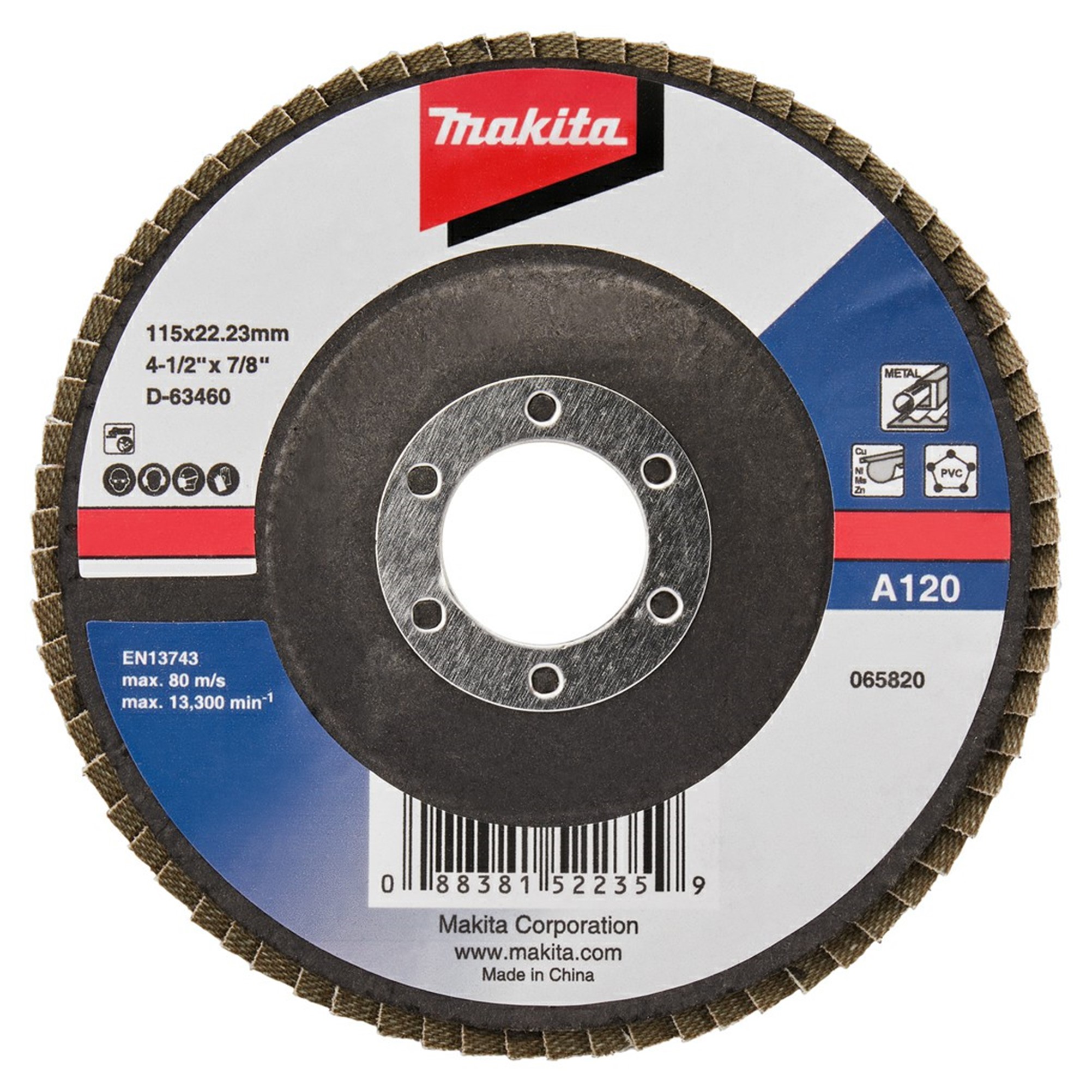 D63460 MULTIDISCO FLAP ALUMINIA 4-1/2″ G120 CON SOPORTE FIBRA VIDRIO C/ANGULO