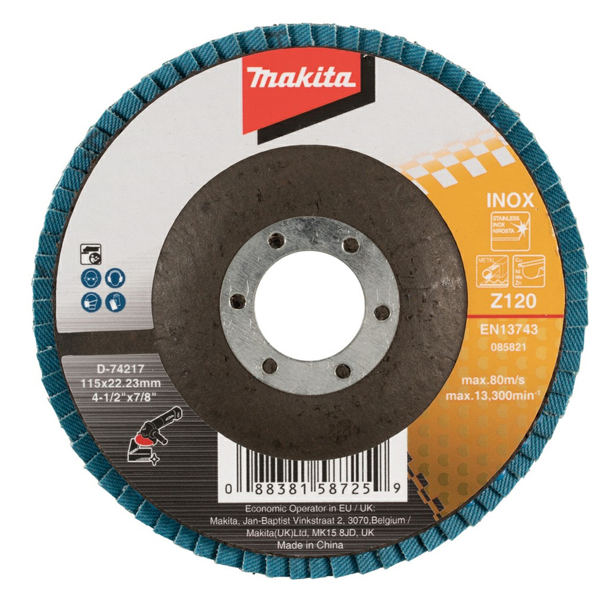 D74217 MULTIDISCO FLAP ZIRCONIA 4-1/2″ G 120 PARA INOX TIPO PLANO