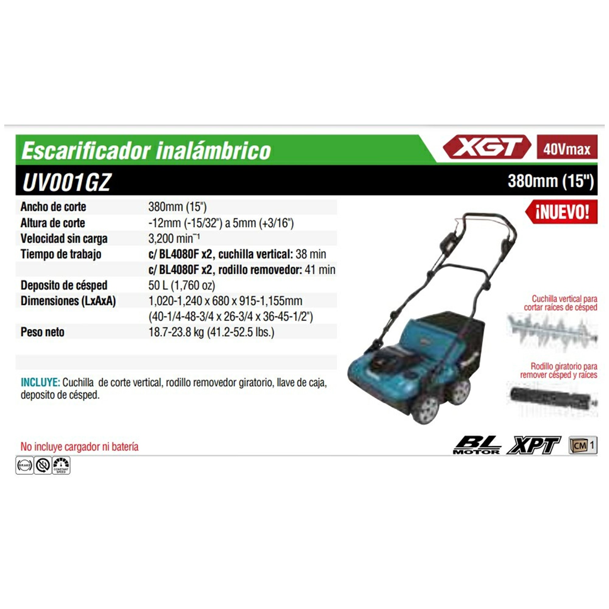 UV001GZ ESCARIFICADOR ANCHO CORTE 15″ 3,200 RPM S/BAT Y CARG 40V